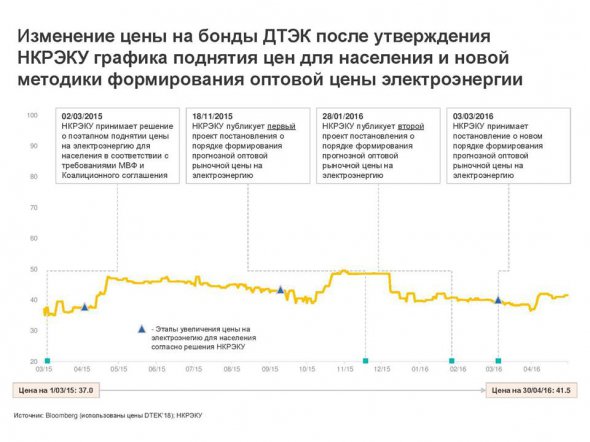 В недавнем интервью “Интерфакс-Украина” владелец ICU Макар Пасенюк попытался расставить все точки над “і”. Во-первых, он с цифрами в руках доказывает отсутствие связи между ценой облигаций ДТЭК и принятием решения о “Роттердаме”. Его аргумент — в это время росли все украинские облигации. Если это так, то предположение о том, что для ДТЭК были созданы какие-либо преференции для роста — не работает. “Если сопоставить даты принятия этих регуляторных решений и график котировок еврооблигаций ДТЭК, то вы увидите их очень слабую взаимосвязь”, — говорит он.