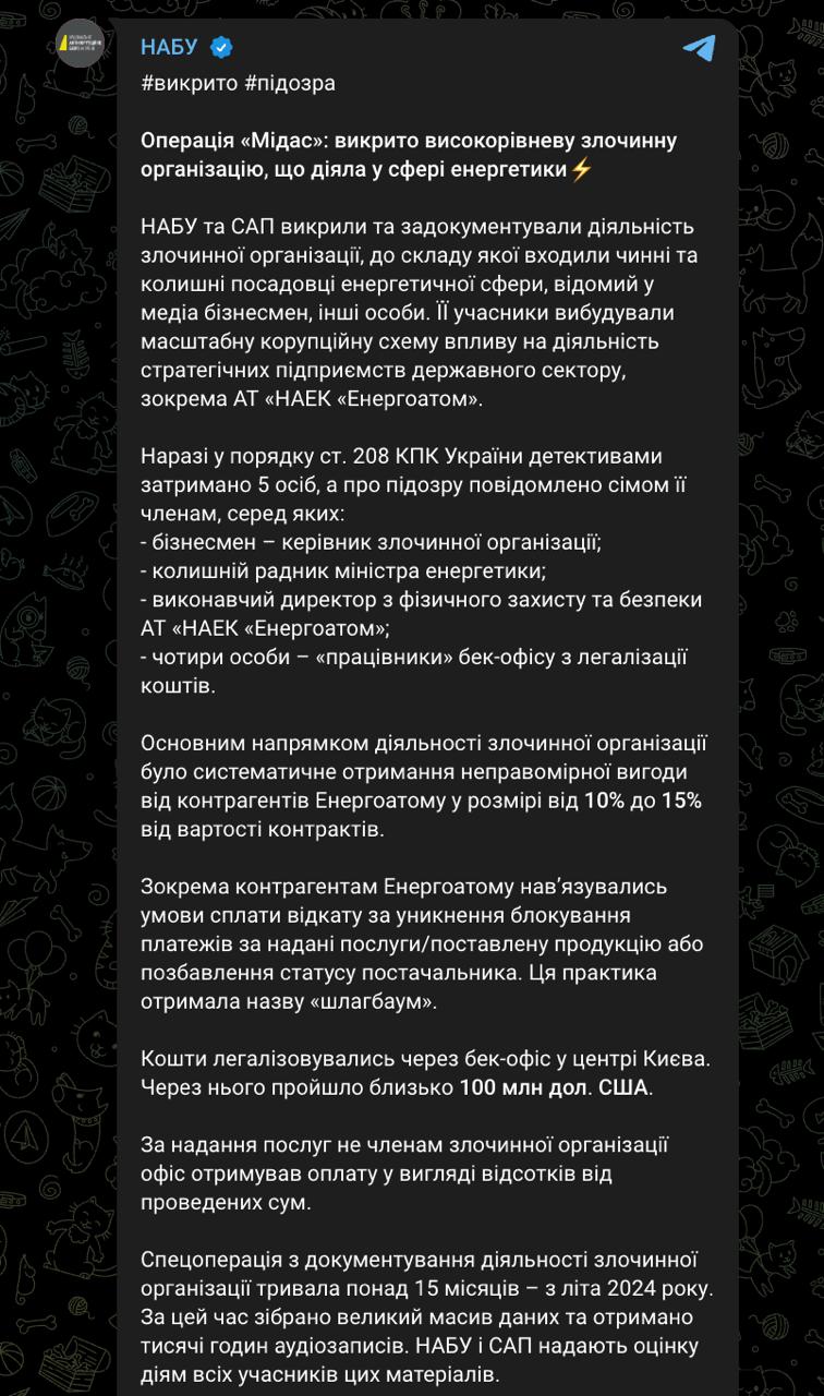 Также Миндич, похоже, получил подозрение по делу о коррупции в “Энергоатоме”.